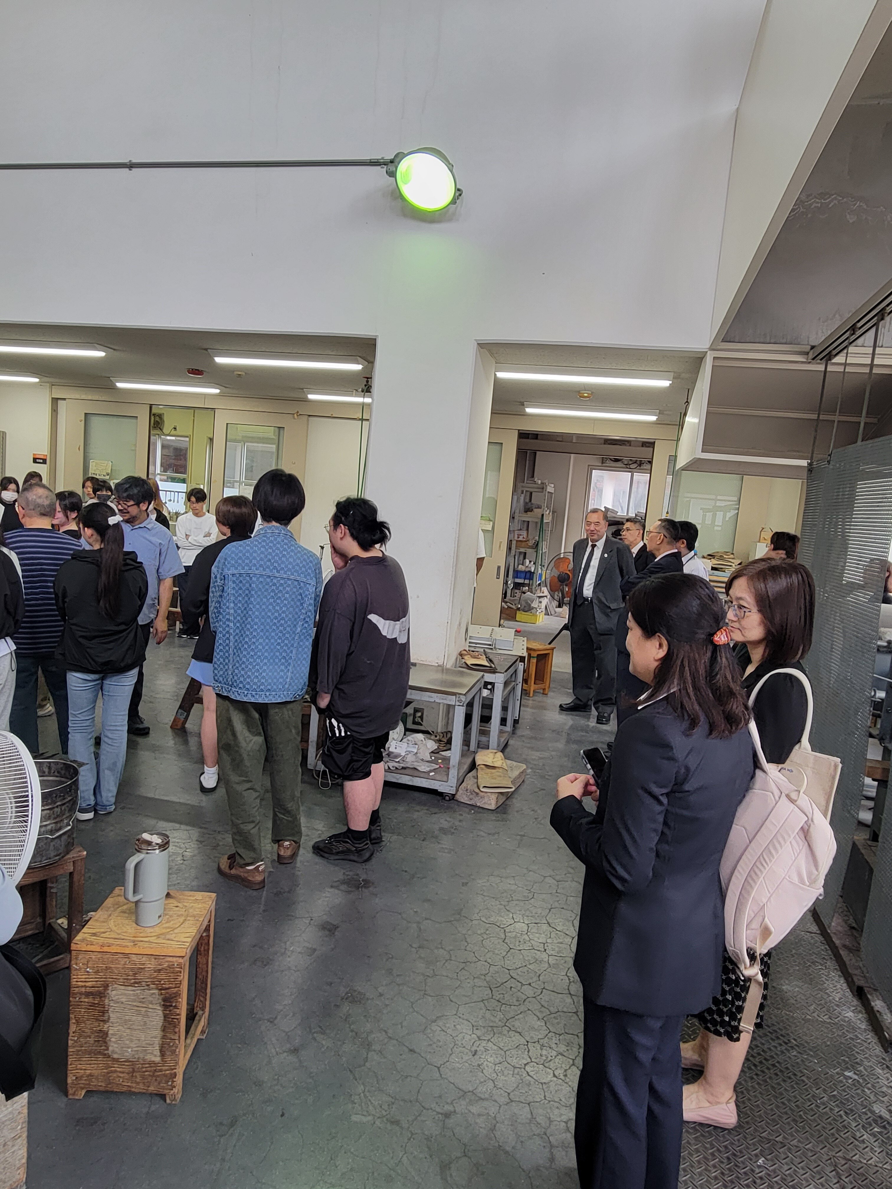 その後は、現在本学に短期留学中の致理科技大学の学生3名との懇談会や、芸術学部でのガラス工芸授業の見学なども行われました。
