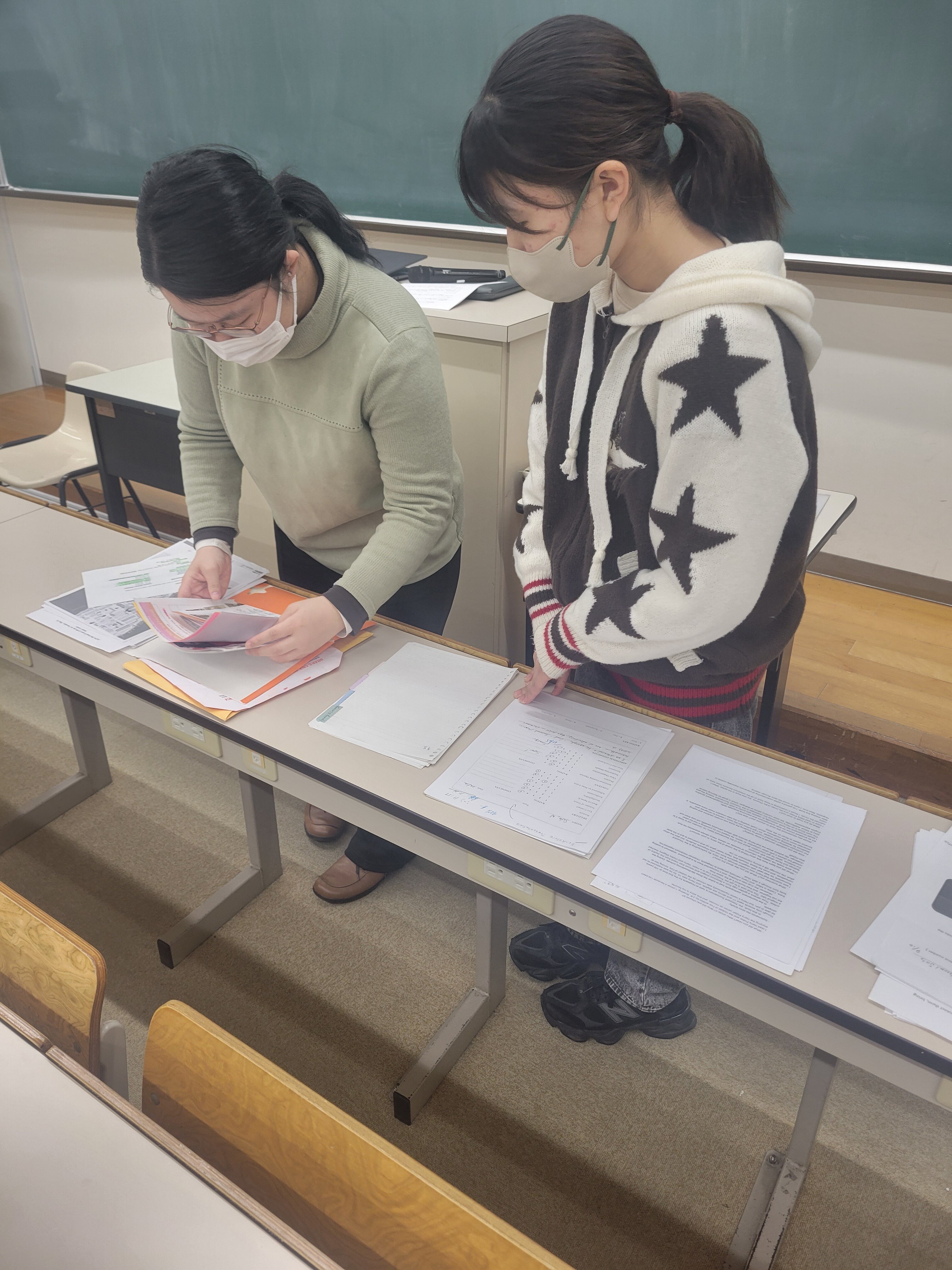 説明会後には、佐藤さんが実際に使用していた教科書や資料を手に取りながら、どのように英語力を伸ばしていったのか、どんな授業を履修していたのかといった具体的なお話も聞くことができました。
