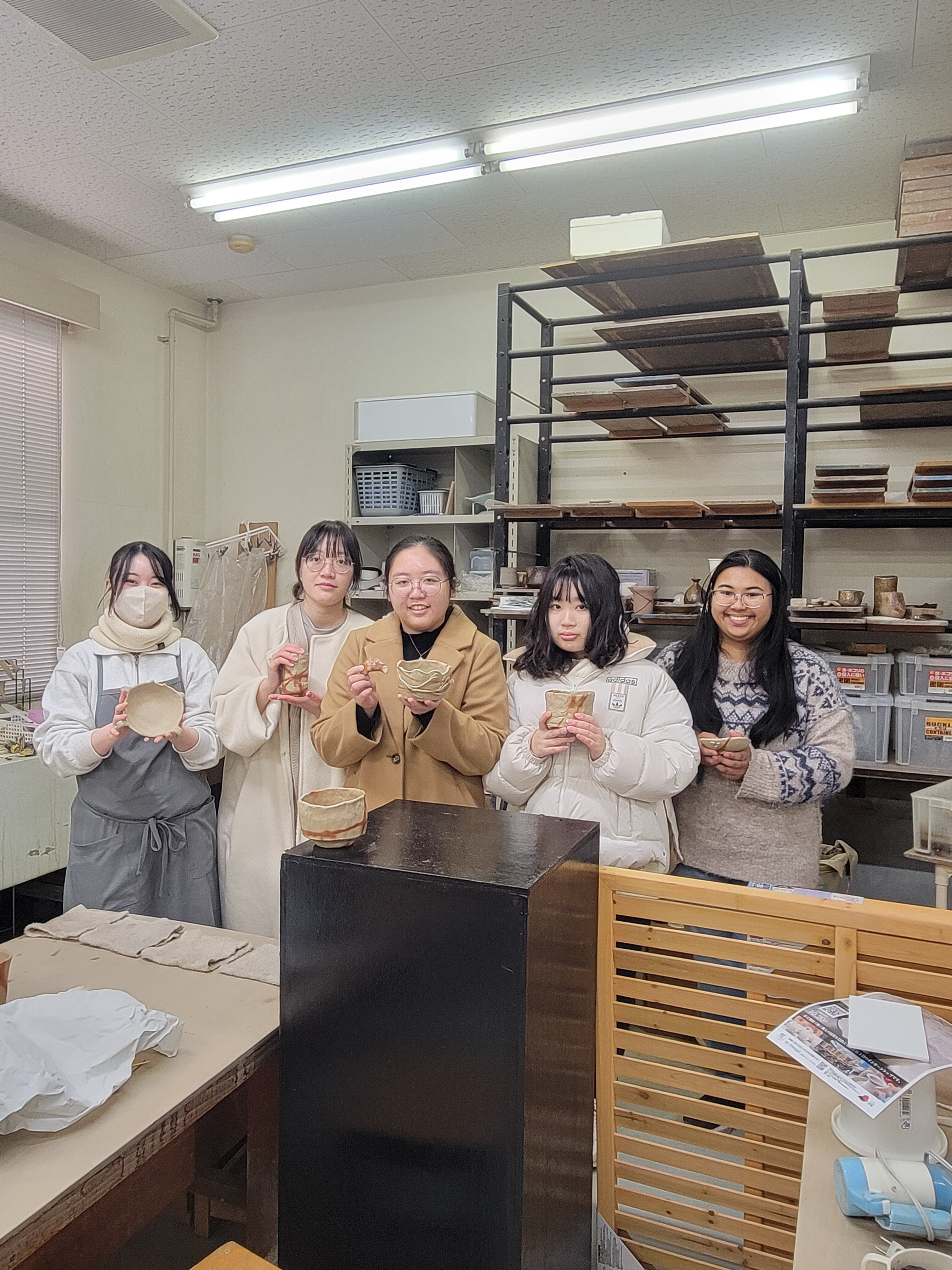 2025年12月23日、2026年1月20日、27日の計3回にわたり、現在、台湾の致理科技大学から来学している交換留学生等を中心に、陶芸体験を実施しました。