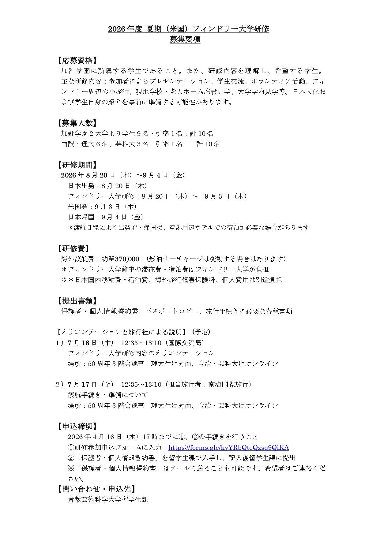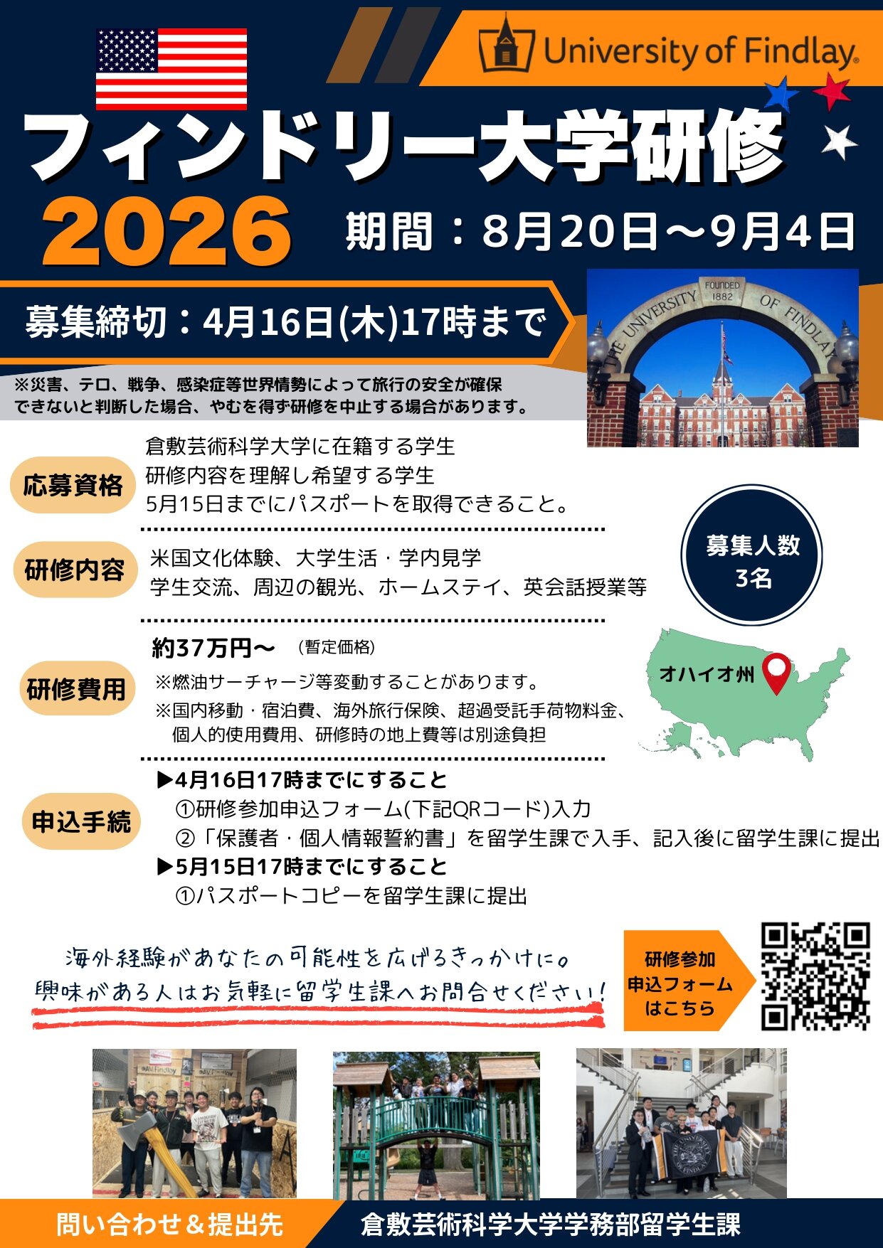 アメリカ・フィンドリー大学研修 参加者募集